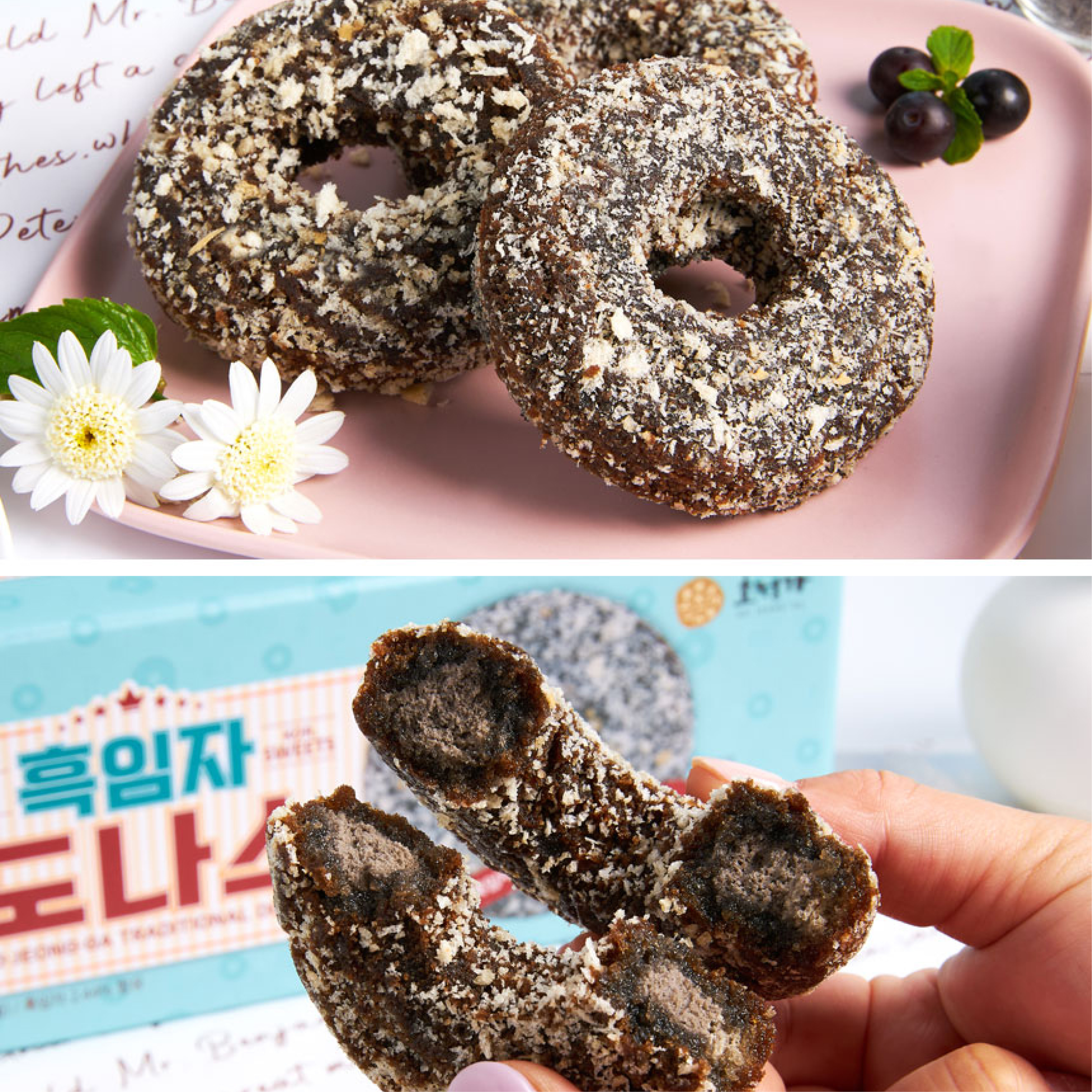 ● 原材料名 小麦粉(アメリカ、オーストラリア産)、大豆油、水あめ、砂糖、パン粉(小麦粉、イースト、塩、パーム油、ブドウ糖)、黒ごまペースト、ショートニング、ブドウ糖、全卵粉、米シロップ、塩、イースト