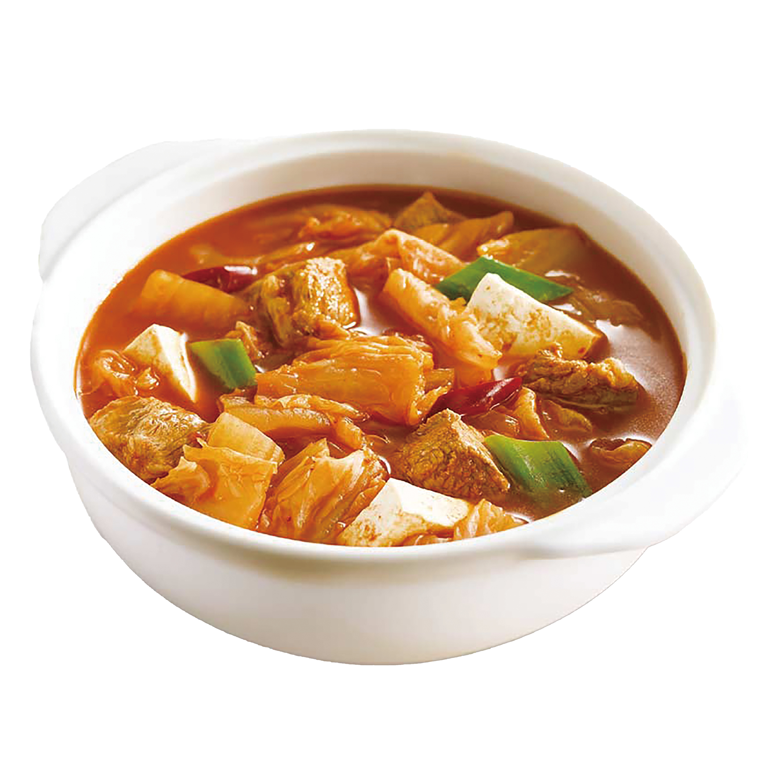 ● 原材料名 精製水、はくさいキムチ、豆腐、豚もも肉(韓国産)、長ねぎ、キムチエキス、豚脂、にんにく、ポークベース、唐辛子粉、青唐辛子、豚骨エキス、旨みペースト、複合調味食品、酵母エキス、豆もやしエキス、大豆油、唐辛子種油/調味料(アミノ酸等)、香辛料抽出物、乳酸Ca、硫酸Ca、グリセリン脂肪酸エステル、レシチン、甘味料(ステビア)、炭酸Mg、クエン酸、香料(一部に豚肉、牛肉、大豆、小麦を含む)