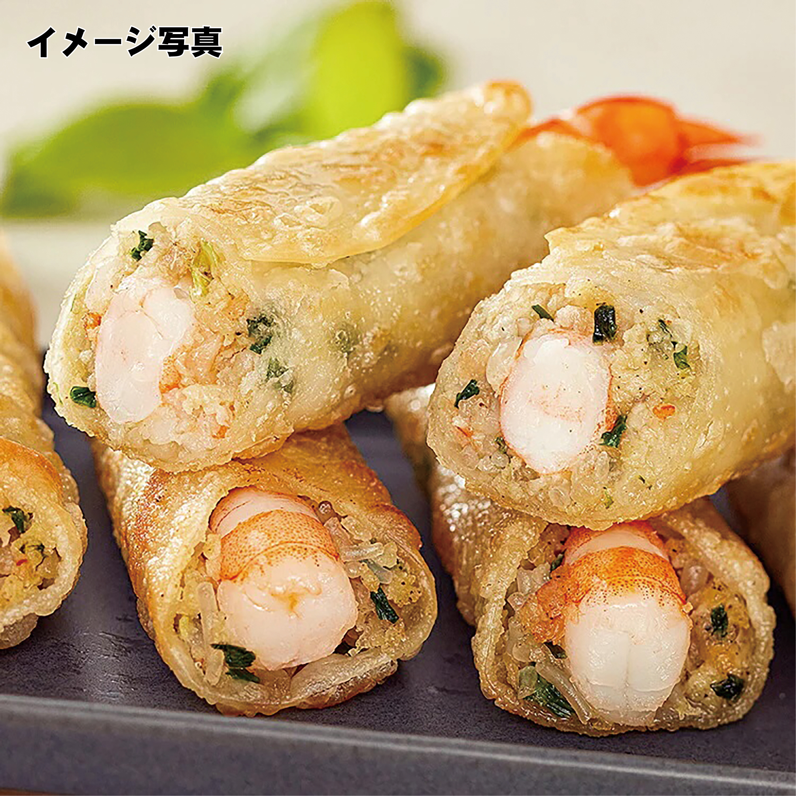 ● 原材料名 えび(えび、食塩)、野菜(玉ねぎ、にら)、春雨、大豆油、野菜風味油、粒状植物性たん白、砂糖、ごま油、えび1キス、えび香味油、食塩、黒こしょう、えび味シーズニング、皮(小麦粉、風味油、食塩)