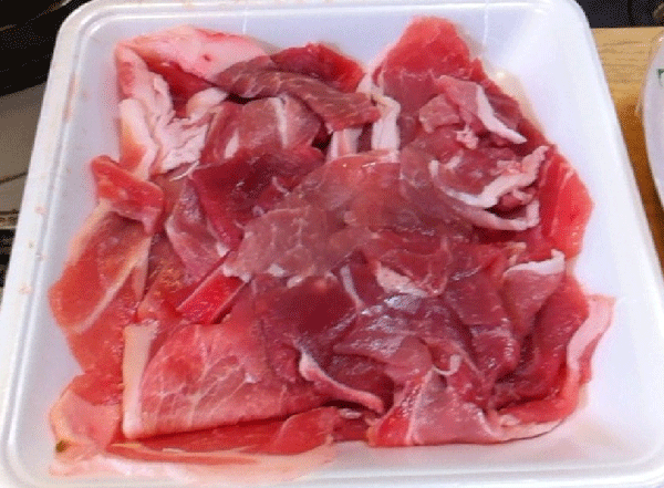 ②純豆腐(スンドゥブチゲ)に入れる材料として豚肉と豆腐、シイタケ、卵を準備します。(お好みでシイタケやヨモギなど野菜を入れても美味しいです。)