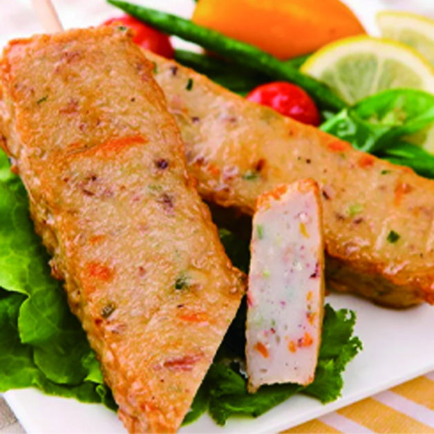 ● 原材料名 魚肉すり身(イトヨリダイ、砂糖)、小麦粉、野菜(ニンジン、ねぎ、にら)、いか、植物油脂、食塩/調味料(アミノ酸等)、ポリリン酸Na、pH調整剤、甘味料(ステビア)、保存料(ソルビン酸K)、(一部に小麦・いか・大豆を含む)