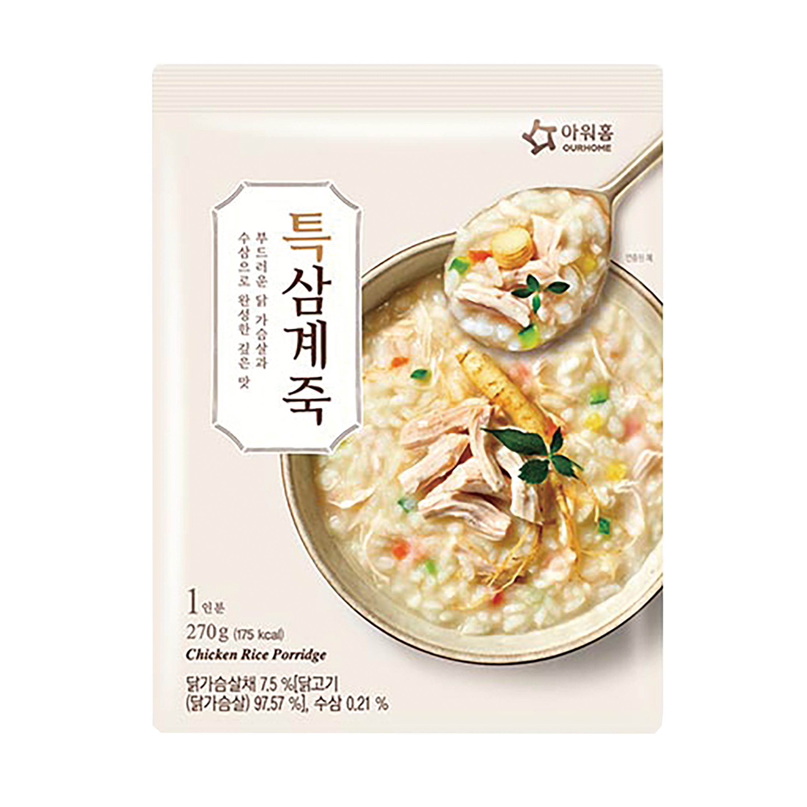 原材料名 精製水、鶏肉加工品、米(韓国産)、複合調味食品、にんじん、ズッキーニ、もち米、米粉、にんにく、牛骨エキス、ごま油、シイタケエキス、食塩、高麗人参/調味料(アミノ酸)、増粘剤(加工でんぷん)、香料、炭酸水素Na、(一部に小麦、牛肉、大豆、鶏肉を含む)