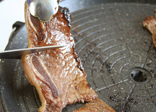 ▲しかし、こういう風に手で骨のところを持って食べるのが韓国式と言えるかもですね。 少し冷まして骨のところが美味しくてしっかり食べられますし、落とさないので食べやすいです。味付けとかお肉を触ったりしなくて美味しいお肉が簡単に食べられる、そして残りの保管も便利!