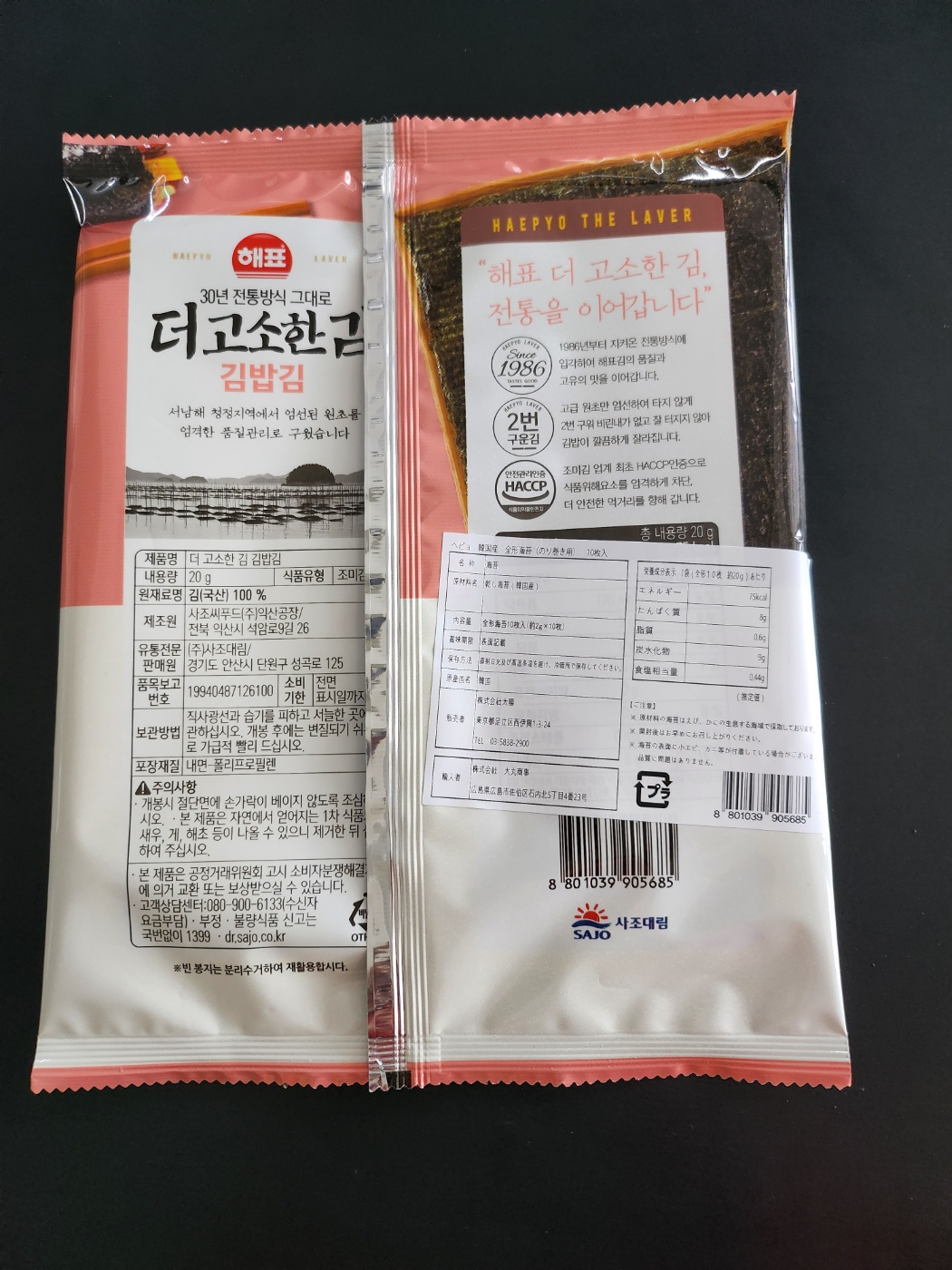● 品 名 ヘピョ・海苔巻き用のり