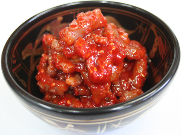歯ごたえが「満足!」です。タコのうまみがたっぷりの辛味ヤンニョム味付けタコです。