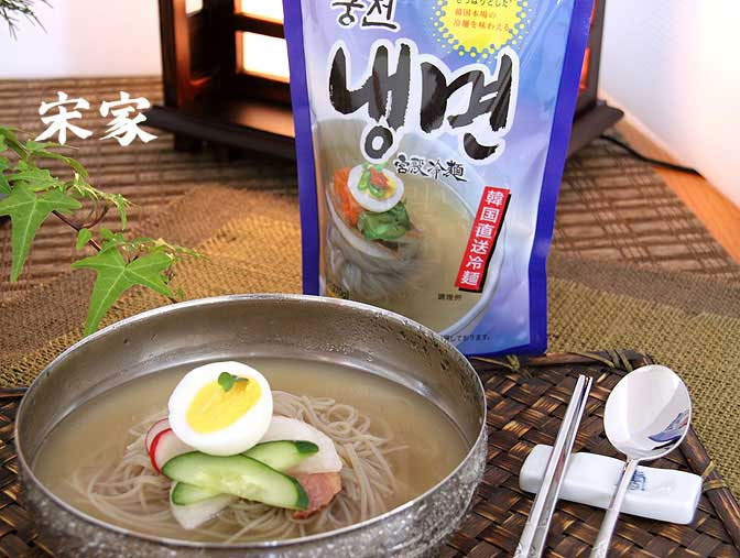 これぞ伝統の味! スープでさっぱり 冷麺は最近では日本でも焼肉店のメニューとしてすっかり定番になりました。そんな冷麺をご家庭でも本格的にお楽しみいただけるのがこの宮殿冷麺です。ストレートスープを使用し、韓国伝統の冷麺をそのまま手軽に楽しむことができます。麺は1.1mmの細さで歯切れが良く、しかも歯応えがしっかりしています。スープは酸味の中に旨味もしっかり味わえます。冬に暖かい部屋で食べるのもいいものですよ。ぜひ試してみてください!