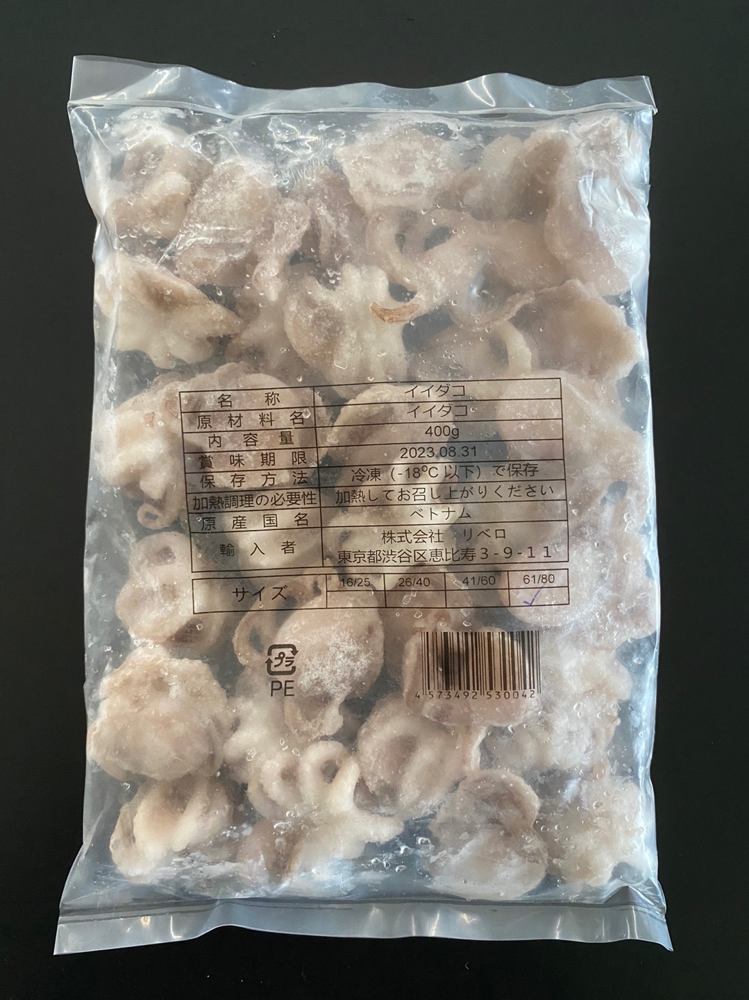 ● 特 徴 目・墨・口を工場で一杯(匹)ずつ 丁寧に除去。IFQ(バラ凍結)でロ スなく必要な数だけ解凍可能。