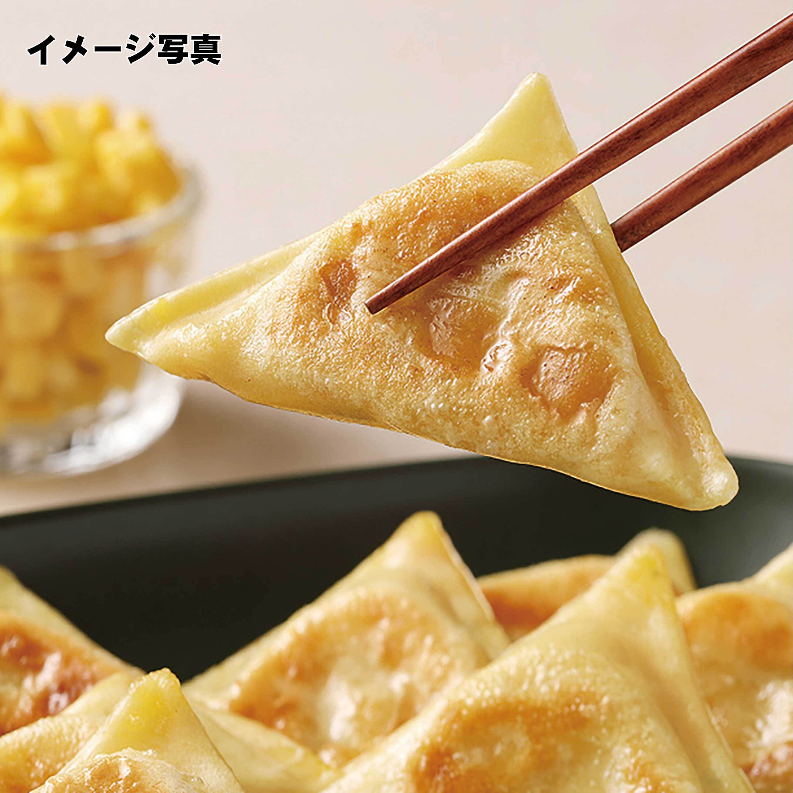 ● 原材料名 スイートコーン(タイ産)、乳等を主要原料とする食品、モッツァレラチーズ、クリームチーズ、玉ねぎ、砂糖、マヨネーズ、食塩、こしょう、ファットスプレット、皮(小麦粉、植物油脂、食塩、コーンフラワー)