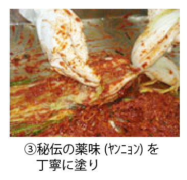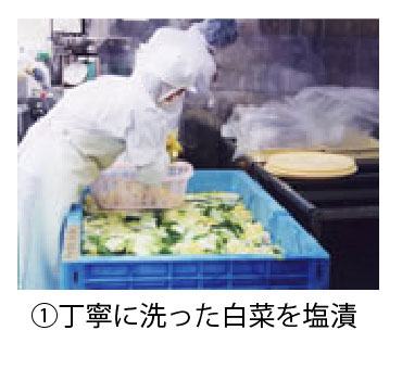 - 製 造:職人の工場で完全手造りにて製造。設備も充実し、熟成保管庫も万全で、衛生面も安心の体制です(日産1トン可能)。白菜は淀橋市場・葛西市場の入札を持ち、直接買付で安全・新鮮が自慢です。