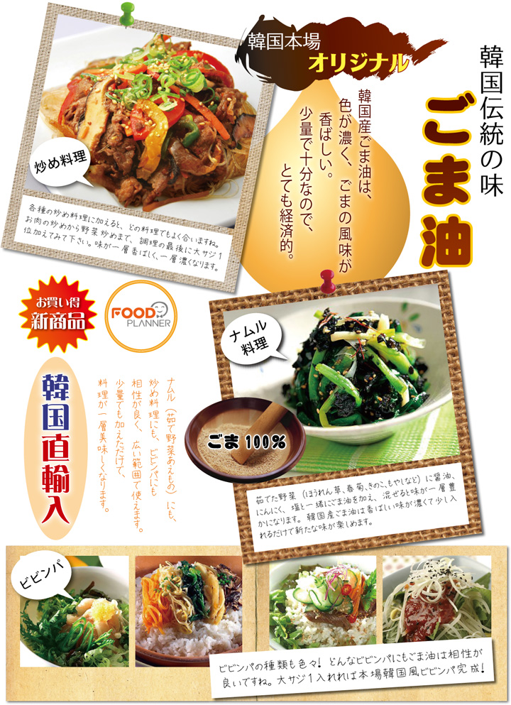 ● 商品特徴 韓国の消費者が選んだごま油ランキング1位!!韓国の春雨料理とかに最適です。