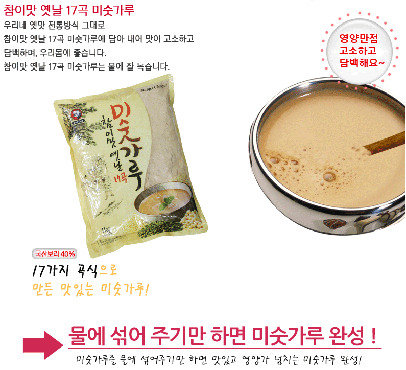 原材料名 豆20%(輸入産)、麦25%(韓国産)、もち米20%、玄米、粳米、トウモロコシ、小麦米、ゴマ、ハトムギ、糯粟、モロコシ